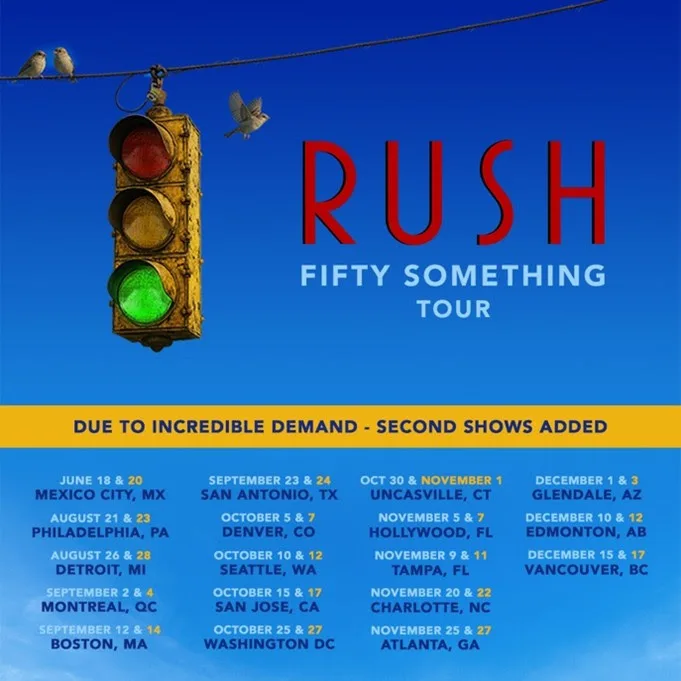 Rock & Roll Hall of Fame® Inductees, GRAMMY® Award-nominated icons, and RUSH Co-Founders Geddy Lee [bass, keys, vocals] and Alex Lifeson [guitar, vocals] today announce second dates on all 17 cities of the second leg of their 2026 Fifty Something headline tour due to incredible demand. They have also confirmed a second Mexico City show on June 20th. The tour, in celebration of RUSH’s music, legacy, and the life of late drummer and lyricist Neil Peart, has added a second date in cities including Philadelphia, Boston, Montreal, Washington D.C., Atlanta, Edmonton, Seattle, Vancouver, and more (full dates below). Fans will be able to participate in the RUSH Artist Presale for the newly added shows by signing up at livemu.sc/rush by Thursday, October 23 at 11:59pm ET. No code is needed – access is tied to your account. The Artist Presale begins on Monday, October 27 at 12PM local time in the US and Canada and Wednesday, October 29 at 12PM local time in Mexico. General onsale begins here on Friday, October 31st at 12pm local time for the US & Canada, and Thursday, October 30th at 11am local time for Mexico.